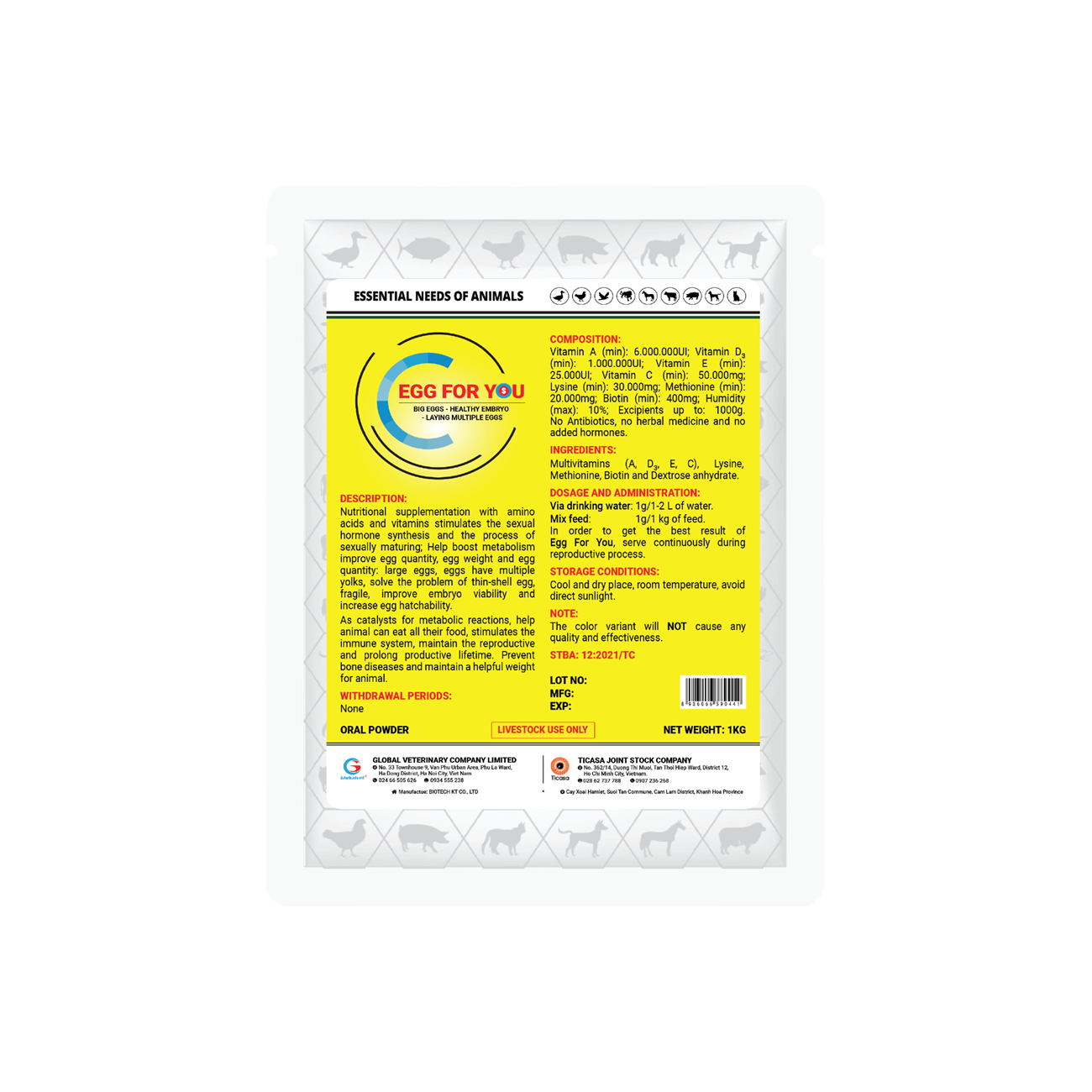 Để đạt được hiệu quả tốt nhất, vật nuôi cần được sử dụng Egg For You liên tục trong thời gian sinh sản.