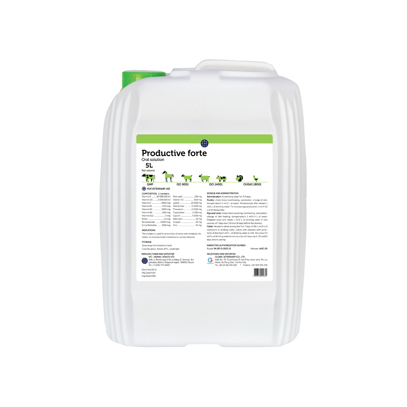Productive forte cung cấp dưỡng chất cần thiết với hàm lượng cao cho tăng trưởng và phát triển của vật nuôi.