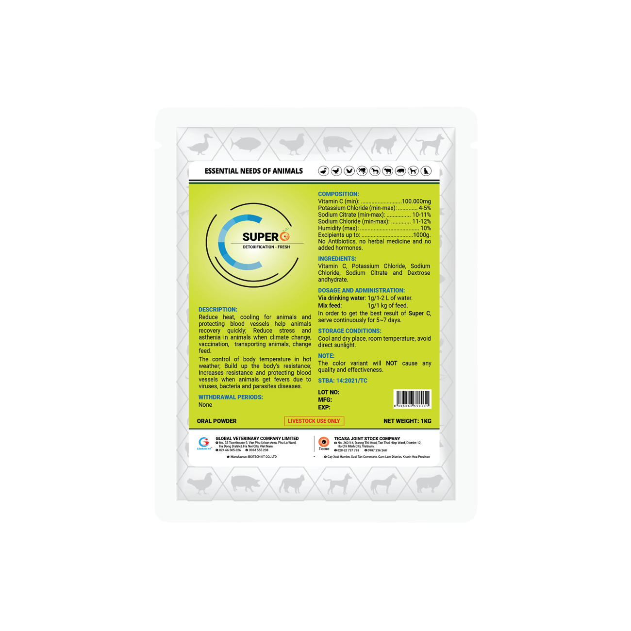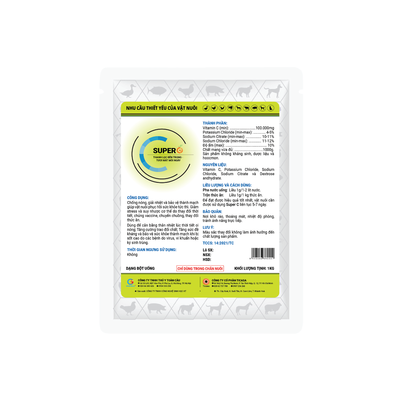 Để đạt được hiệu quả tốt nhất, vật nuôi cần được sử dụng Super C100 liên tục 5-7 ngày.