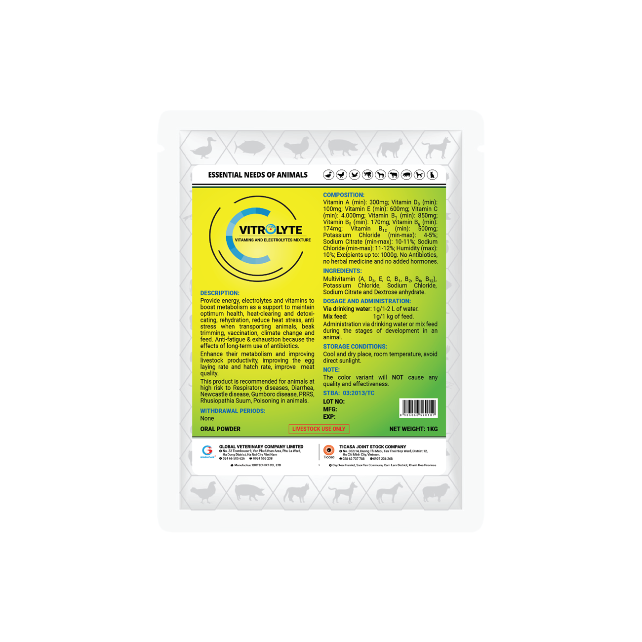 Cung cấp năng lượng, điện giải và vitamin có khả năng chuyển hóa cao giúp vật nuôi tăng lục, thanh nhiệt, giải độc, bù nước, chống nóng, chống stress khi vận chuyển, cắt mỏ, chủng vaccine, thay đổi thời tiết hoặc chuyển đổi thức ăn. Chống mệt mỏi, suy kiệt do sử dụng kháng sinh dài ngày.